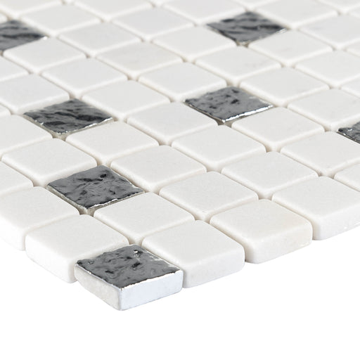 Typ Mosaikfliese Material Glas, Naturstein Farbe silber Mattengröße 30x30cm Stärke 0.8cm Eigenschaften Netzgekle...