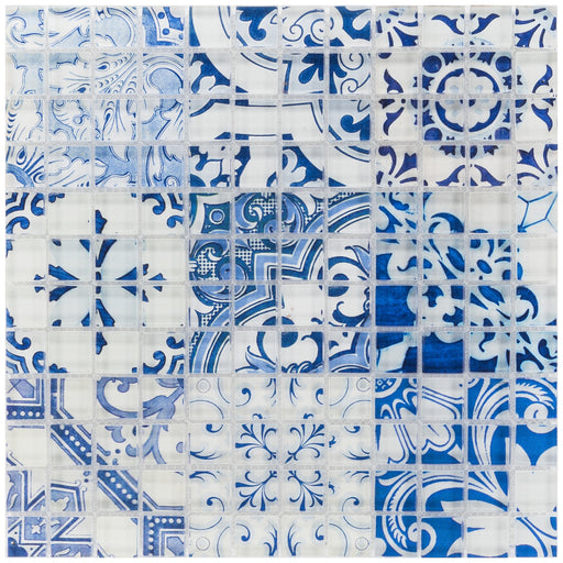 Typ Mosaikfliese Material Glas Farbe blau Mattengröße 32,7x32,7cm Stärke 0.4cm Eigenschaften Netzgeklebt Tr...