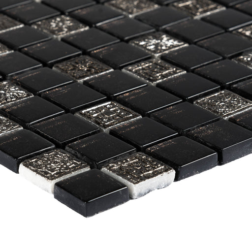 Typ Mosaikfliese Material Glas, Naturstein Farbe schwarz Mattengröße 28,5x28,5cm Stärke 0.8cm Eigenschaften Netz...
