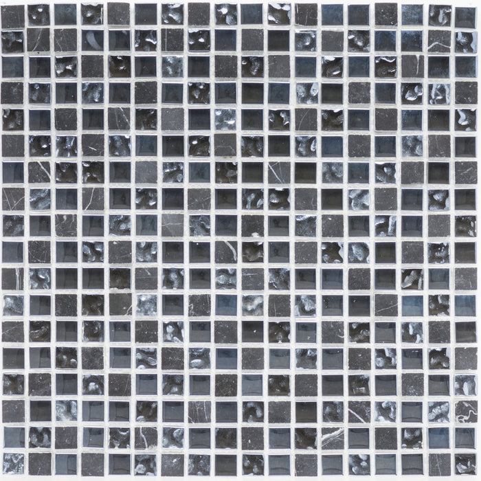 Marmor Mosaik Schwarz Glasmix Schwarz 30,5x30,5cm