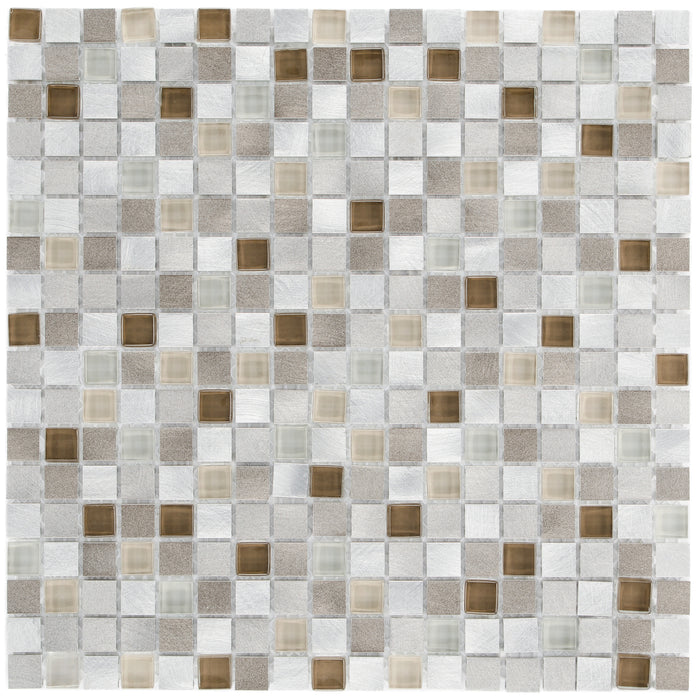Mosaik Glas & Aluminium Cosmos Earth Brown Beige Silver 28,5x28,5cm