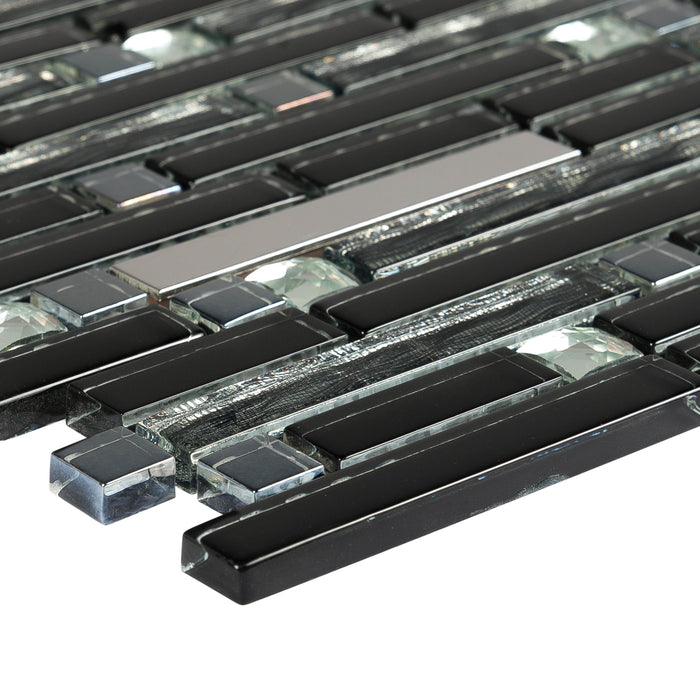 Mosaik Glas & Metall Crystal Black Brick 30x30cm
